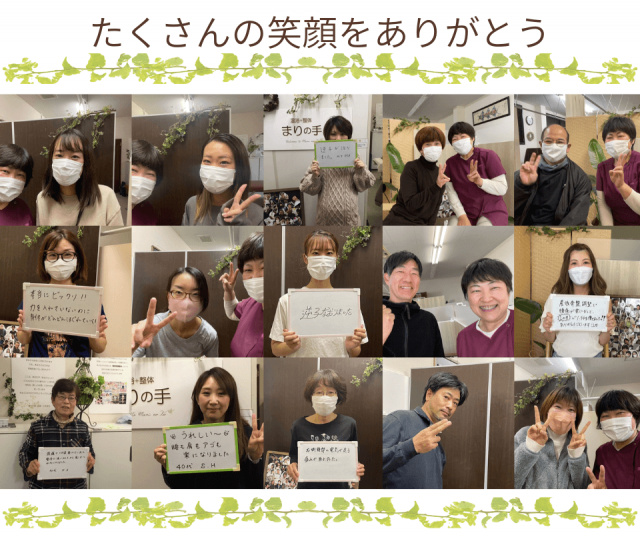 腰も痛くて、いつも腰に手を当てて歩いたりしていましたが、初めてまり先生にお世話になった翌日、腰に手を当てていないと気づきびっくりしました。
